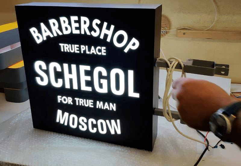 Отличная читаемость, простота и эффективность. Как и самые обычные световые короба чаще используются внутри помещений. Главное их отличие это свечение фрезерованных элементов. Таким образом, достигается лучшая читаемость вывески. Материал короба – алюминиевый композит. Более дорогой и эффектный вариант – инкрустация короба акриловыми буквами. Вставки из акриловых букв положительным образом влияет на привлекательность Вашей вывески.