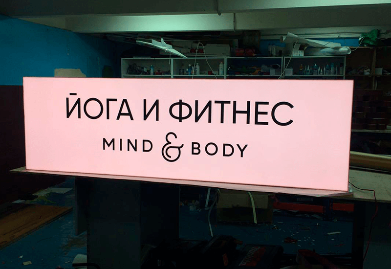 Ярче солнца. Подсветка фронтальная + борта – вашу точку заметят с другой стороны улицы. Тыльная часть – ПВХ. Лицевая часть и борта – молочный акрил. Возможно размещение, как на подложке, так и на раме.